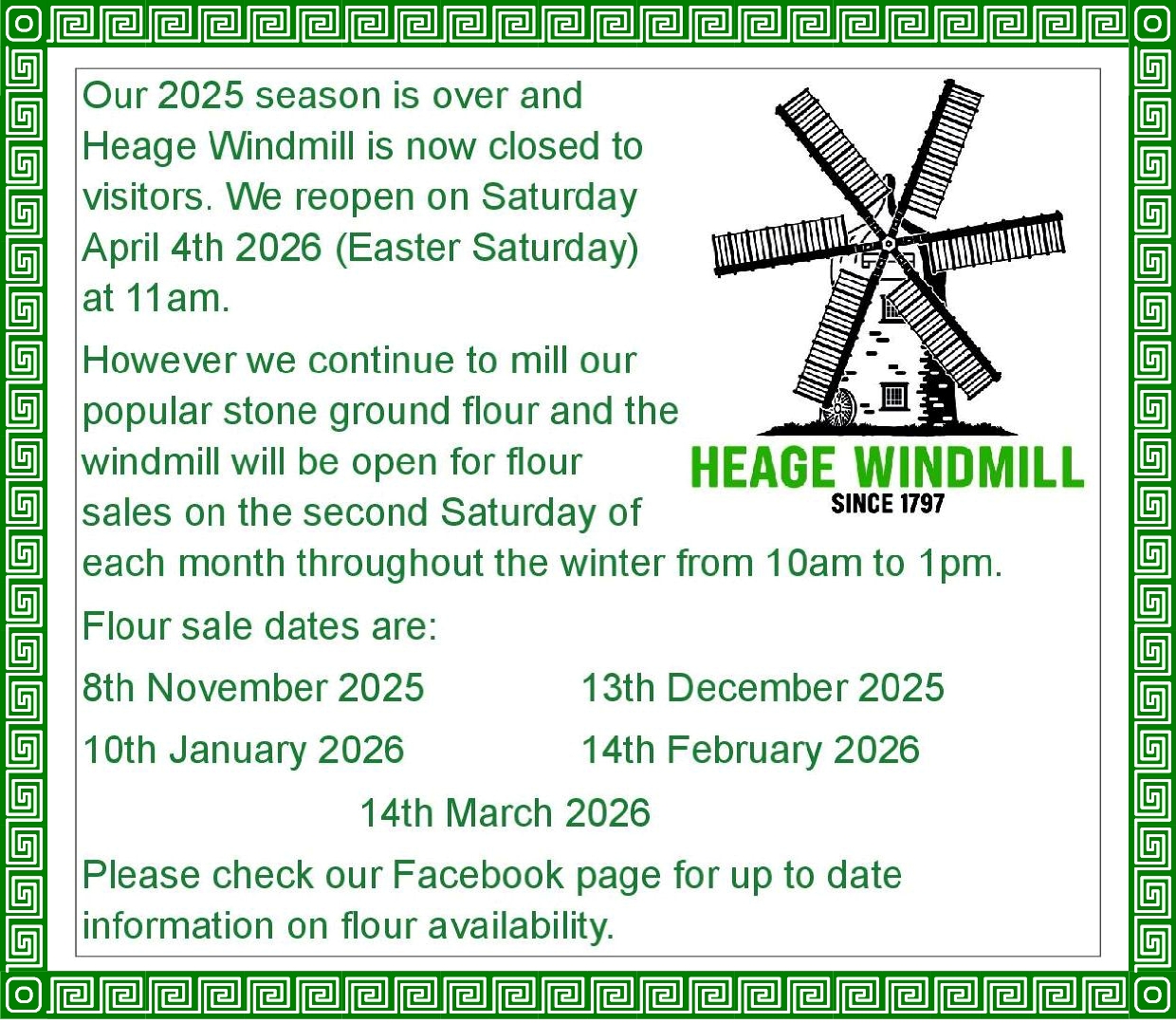 Heage Windmill is owned by Derbyshire CC but is controlled and operated by Heage Windmill Society, a charitable organisation (Reg Charity No 1065980), to whom all profits from running the windmill are donated by the Friends to help ensure its continued preservation